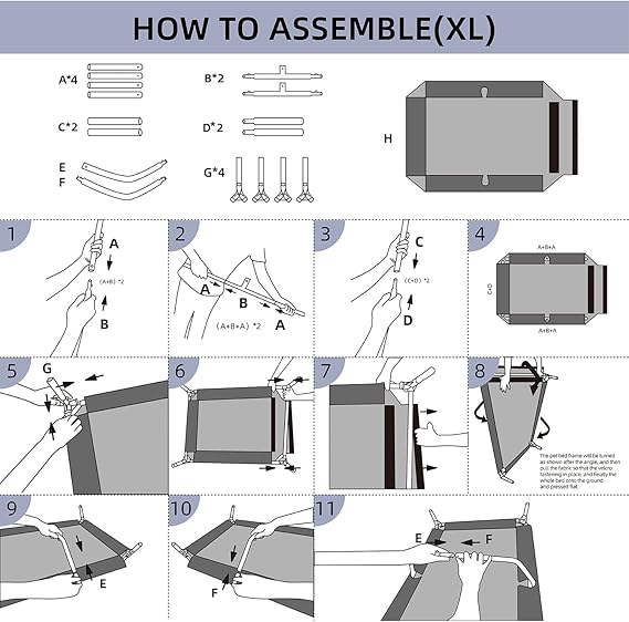When the bed arrived, it was a bit intimidating. It looked like a lot of pieces but once I got started it was not bad at all. The instructions are very easy to follow. To be honest, I had trouble getting the last leg on but went back and reviewed the instructions to find out I had attached the wrong side first. When I flipped it, it went together much more easily.The quality is great. All of the pipes are metal and the plastic pieces that join them together seem to be heavy enough.My dog could hardly wait for me to get it put together. He really likes it. It is quite large I included pictures so you can gauge the size. He is a 68 pound Lab/Staffie mix. The bed would fit two of him so it would be great for extra large breeds.