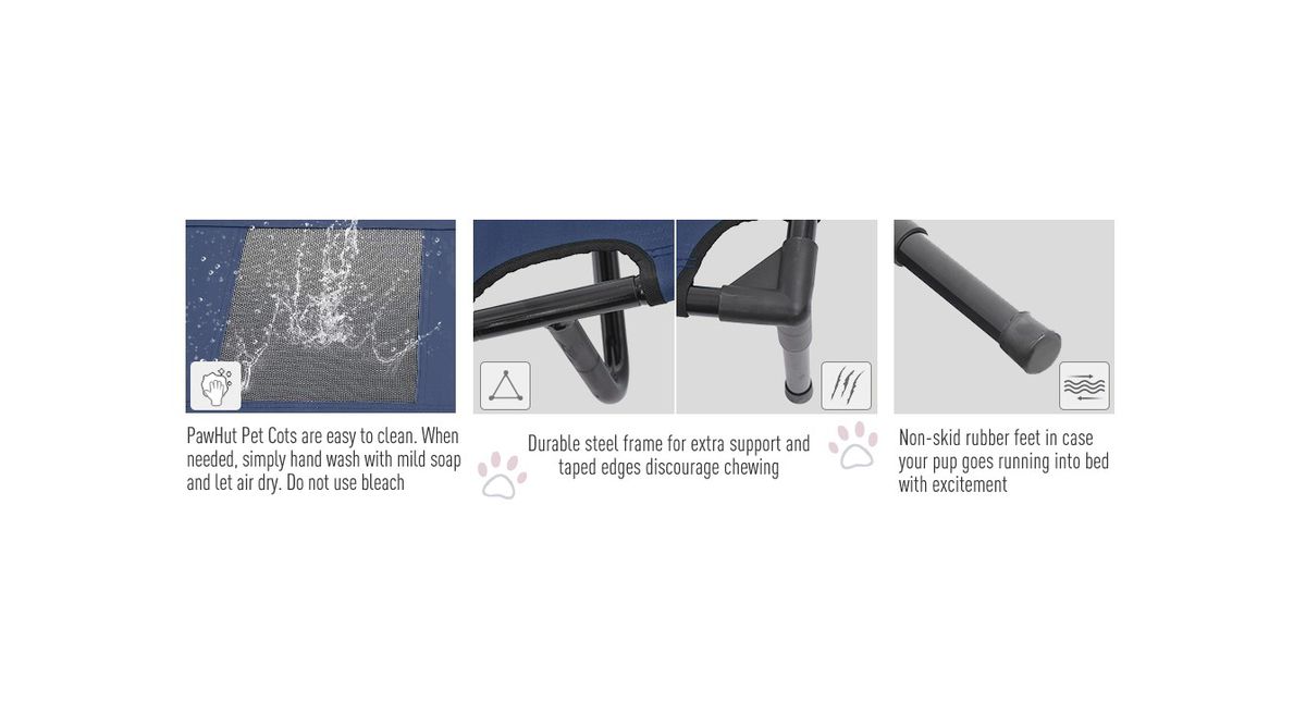Whether at home or on the go, our elevated dog cot is the perfect choice for pet owners who want to provide their furry friends with a comfortable, breathable, and easy-to-clean resting place. Keep your pet cool, comfortable, and secure while promoting better sleep and health with this stylish raised bed.